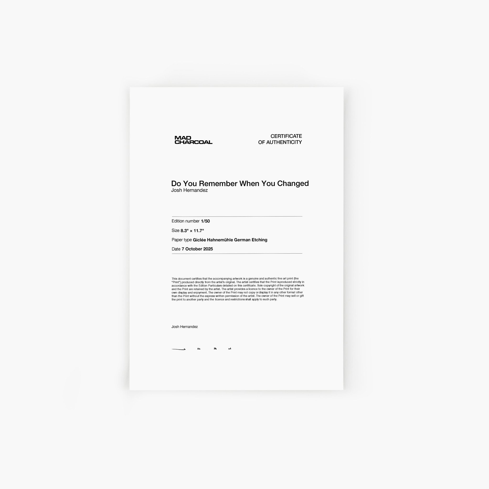 - Presented on acid-free, archival cotton German Etching Giclée paper from Hahnemühle